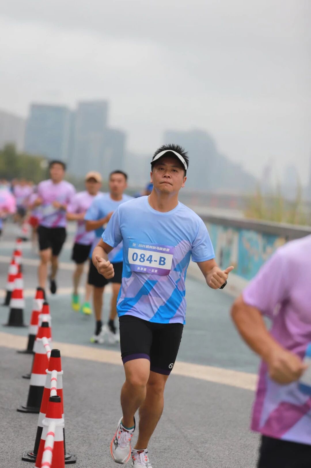 本次比賽從錢江龍廣場啟程,沿之江綠道至5.2公里處折返,最終回到起點(diǎn)。持續(xù)的大雨讓賽道格外濕滑,這不僅是對選手體能的考驗(yàn),更是對其意志的挑戰(zhàn)。