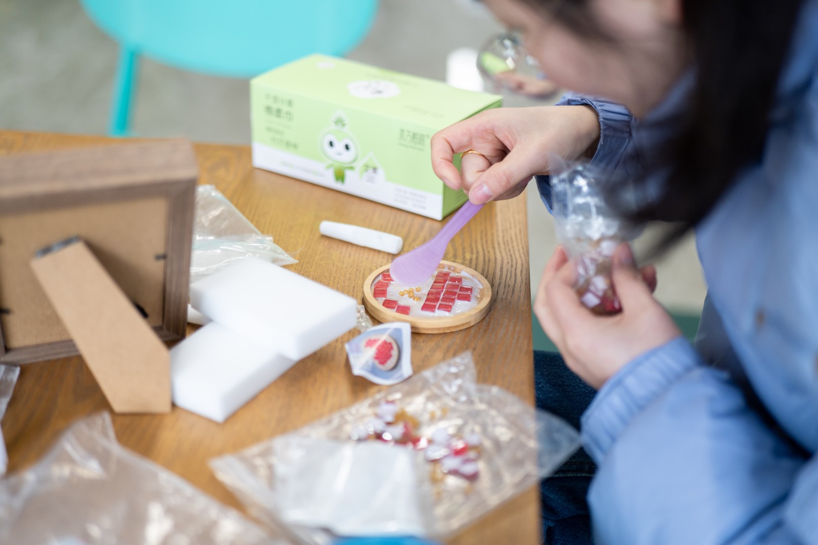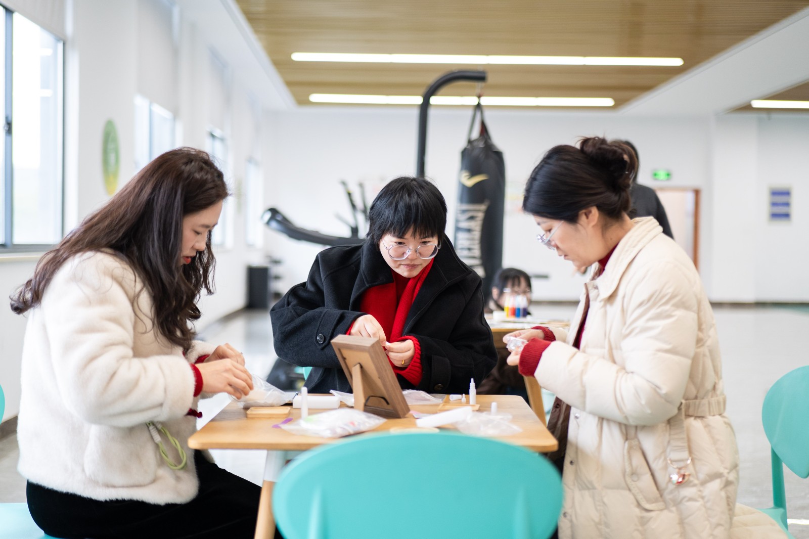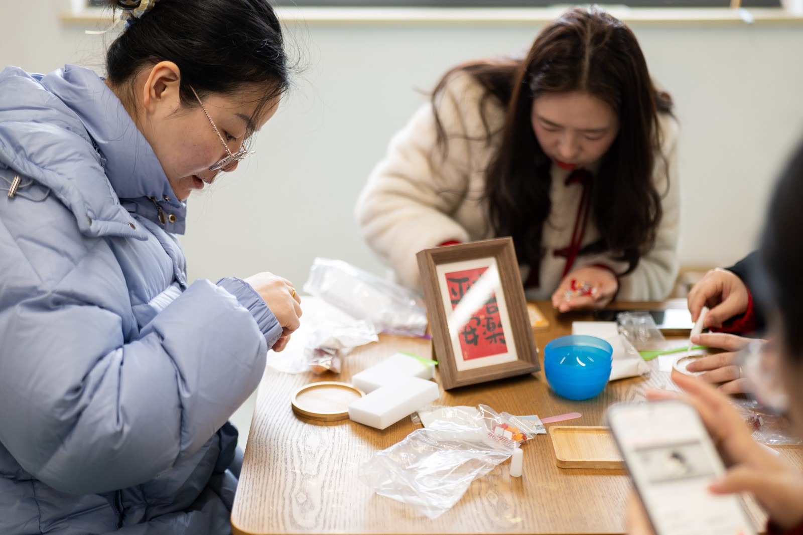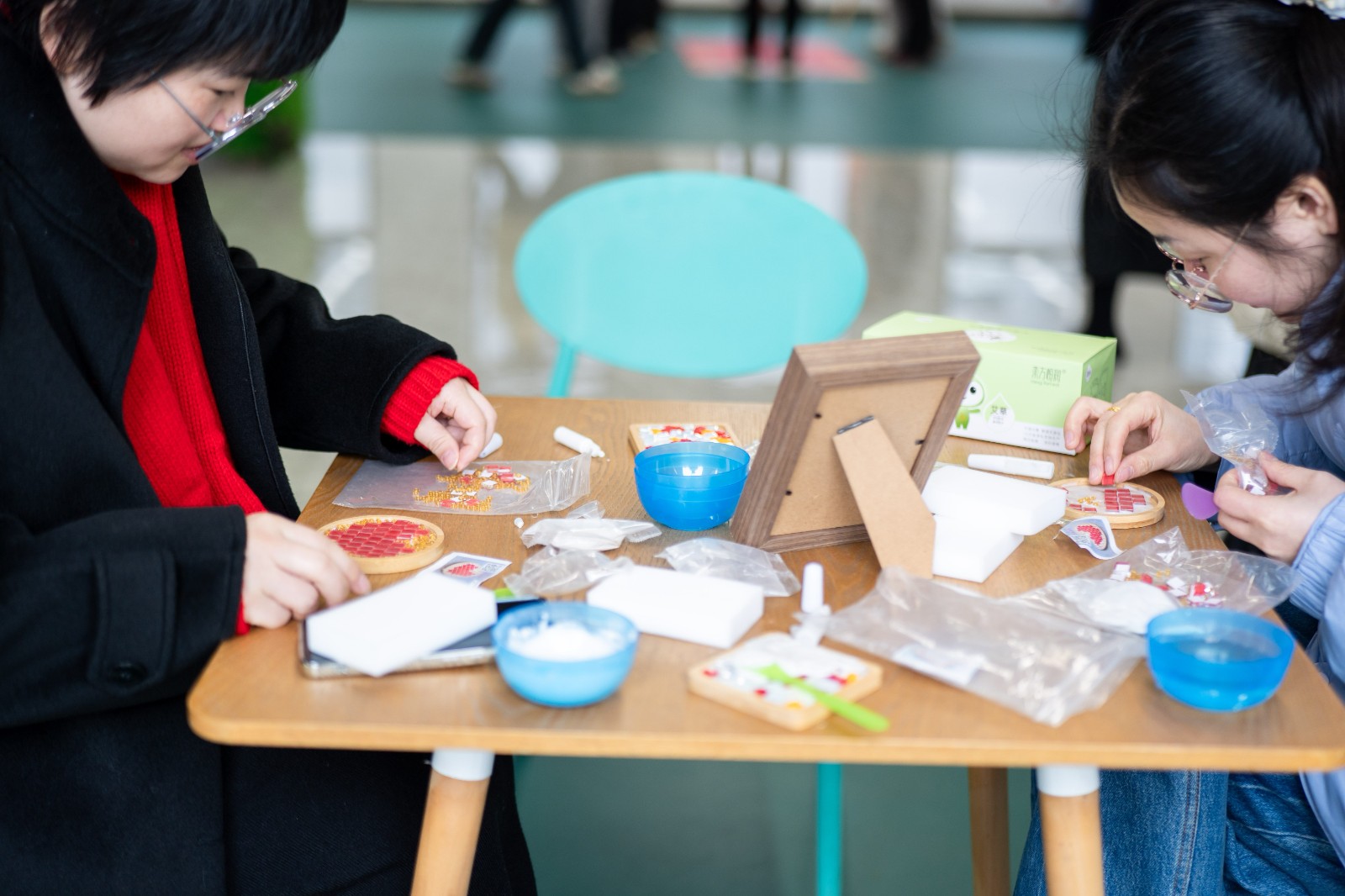 在福字杯墊DIY區(qū),大家紛紛化身手工達(dá)人,沉浸在創(chuàng)作的樂趣中。涂膠、粘貼、填縫……看似簡單的步驟,卻需要十足的耐心。10分鐘后,一個個精美的福字杯墊在手中成型。捧著自己親手完成的作品,小伙伴們的笑意里滿是藏不住的小小成就感。