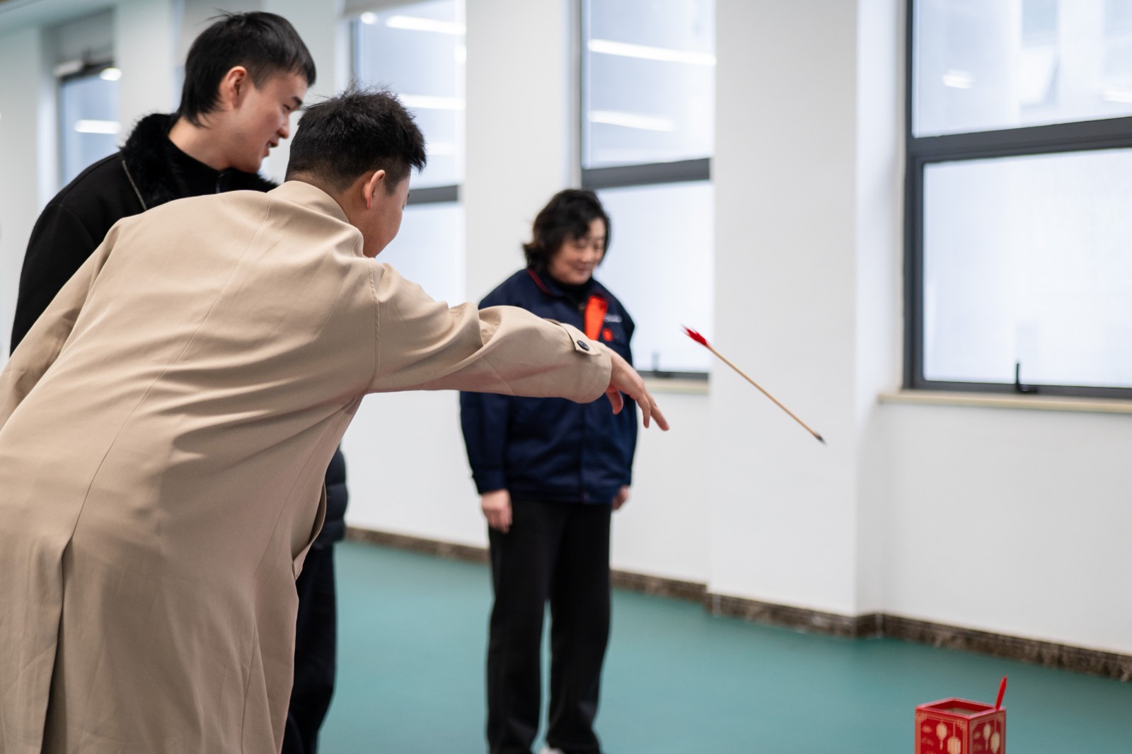大家屏息凝神、抬手輕擲,箭矢在空中劃出輕快弧線。有小伙伴一擊即中,引來滿堂喝彩;也有人稍稍偏出,也惹得全場會心一笑。
