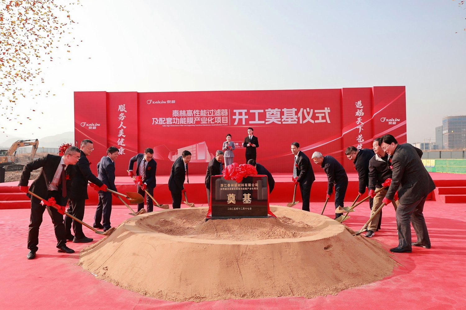 2025年12月17日上午,浙江泰林新材料有限公司高性能過(guò)濾器及配套功能膜產(chǎn)業(yè)化項(xiàng)目開(kāi)工奠基儀式隆重舉行。中共杭州市富陽(yáng)區(qū)委常委、杭州富春灣新城管委會(huì)主任孫偉,杭州市富陽(yáng)區(qū)靈橋鎮(zhèn)黨委書(shū)記章繪,浙江省新材料產(chǎn)業(yè)協(xié)會(huì)理事長(zhǎng)、浙江大學(xué)教授、浙江省特級(jí)專家楊輝,泰林生物董事長(zhǎng)、總裁葉大林,泰林生物副總裁、泰林新材料總經(jīng)理沈志林,泰林生物副總裁、泰林醫(yī)學(xué)工程總經(jīng)理夏信群,泰林生物獨(dú)立董事董明、倪崖、厲國(guó)威,項(xiàng)目設(shè)計(jì)單位、總包單位、監(jiān)理單位代表,泰林生物及旗下子公司管理團(tuán)隊(duì)均蒞臨現(xiàn)場(chǎng),共同見(jiàn)證了這一重要時(shí)刻!