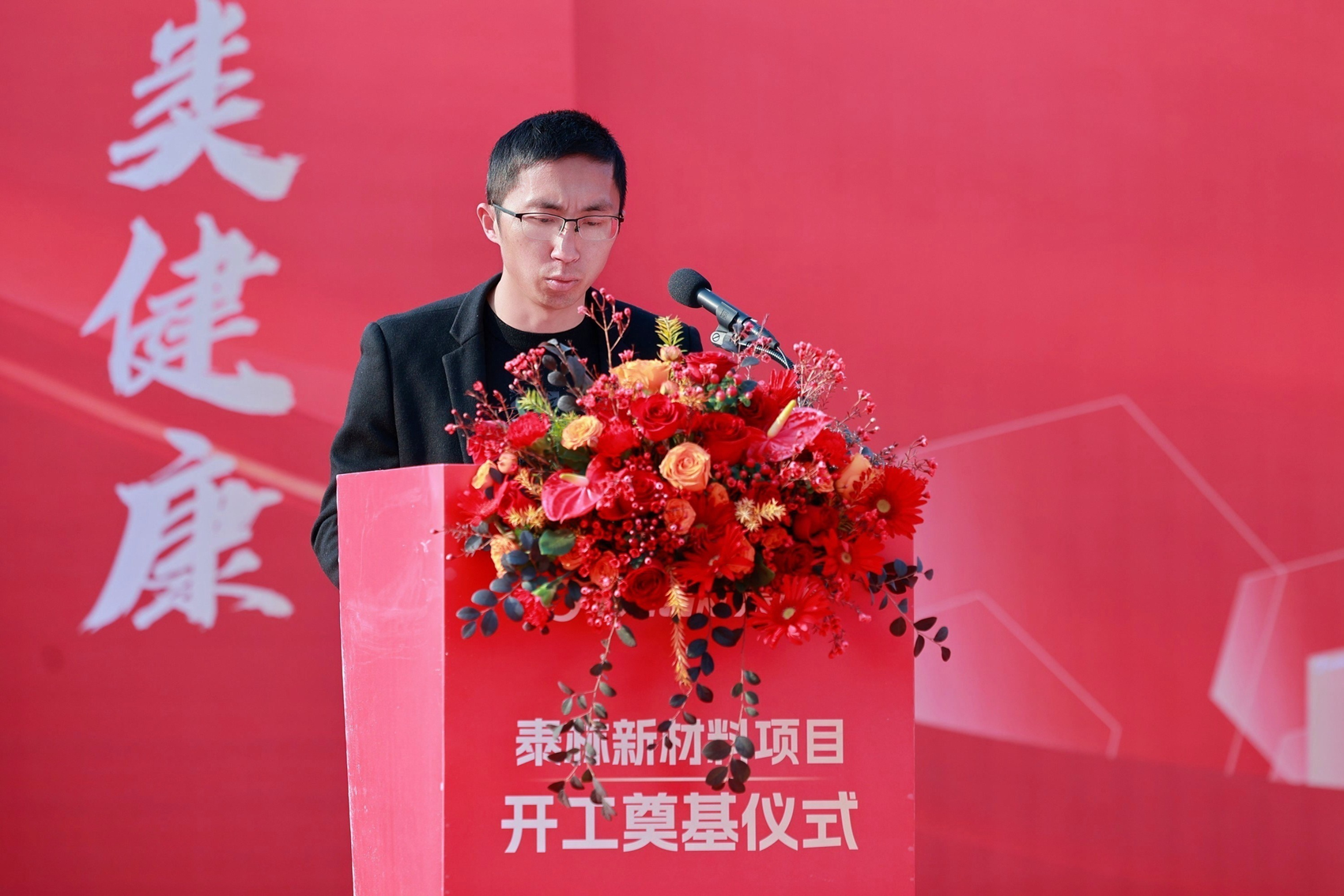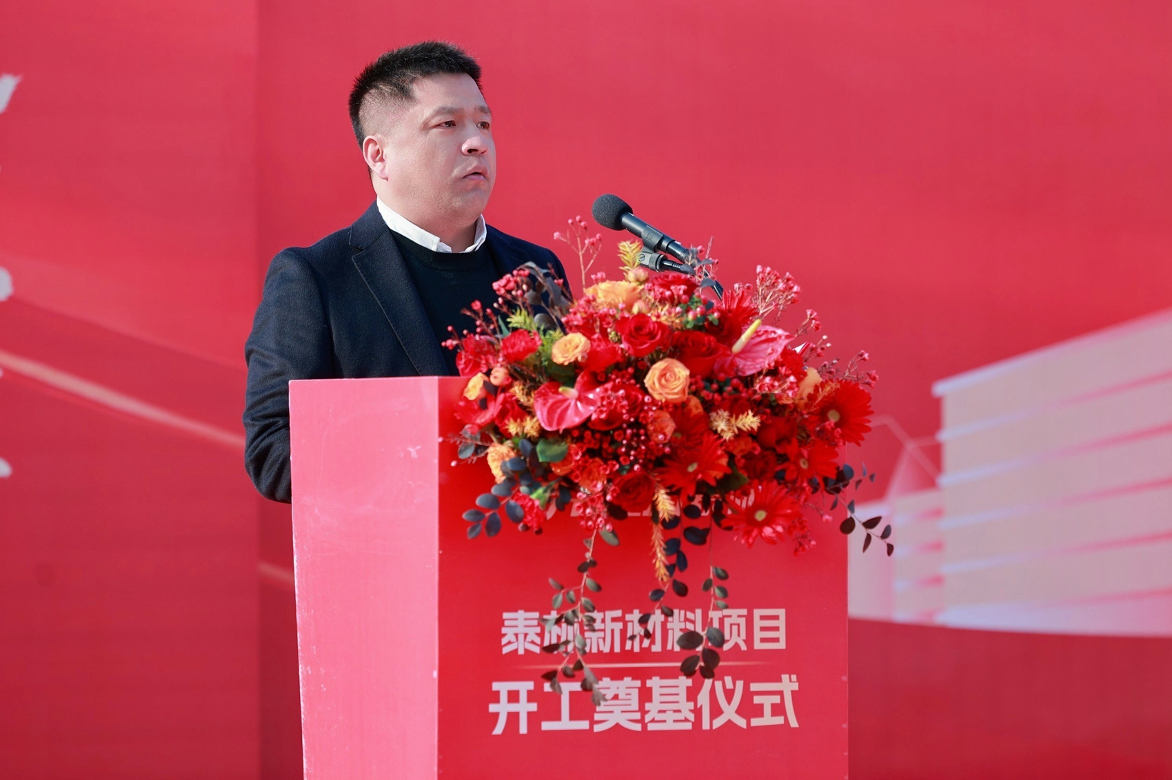 泰林生物副總裁、泰林新材料總經(jīng)理沈志林在開(kāi)工奠基儀式上致辭