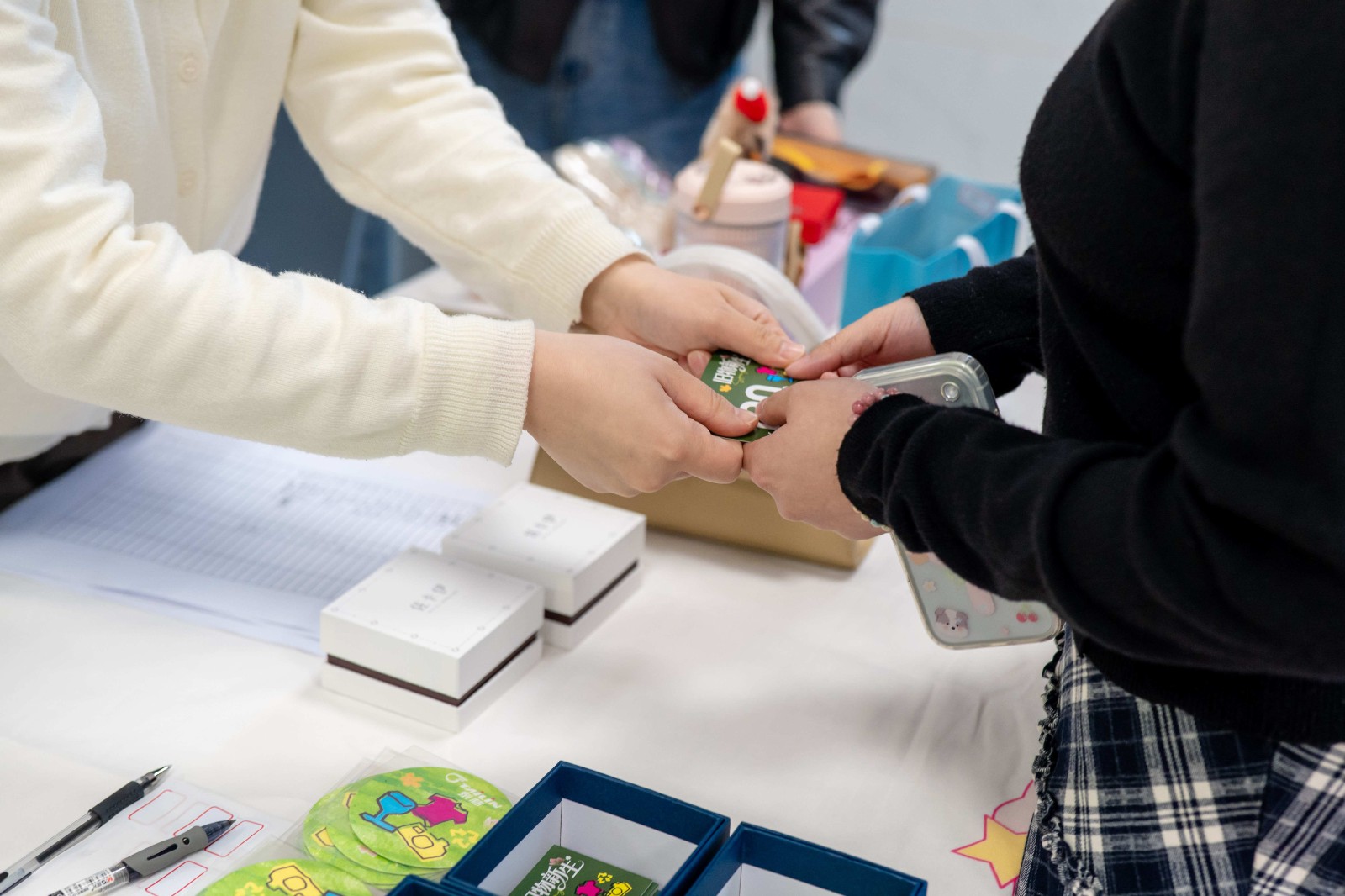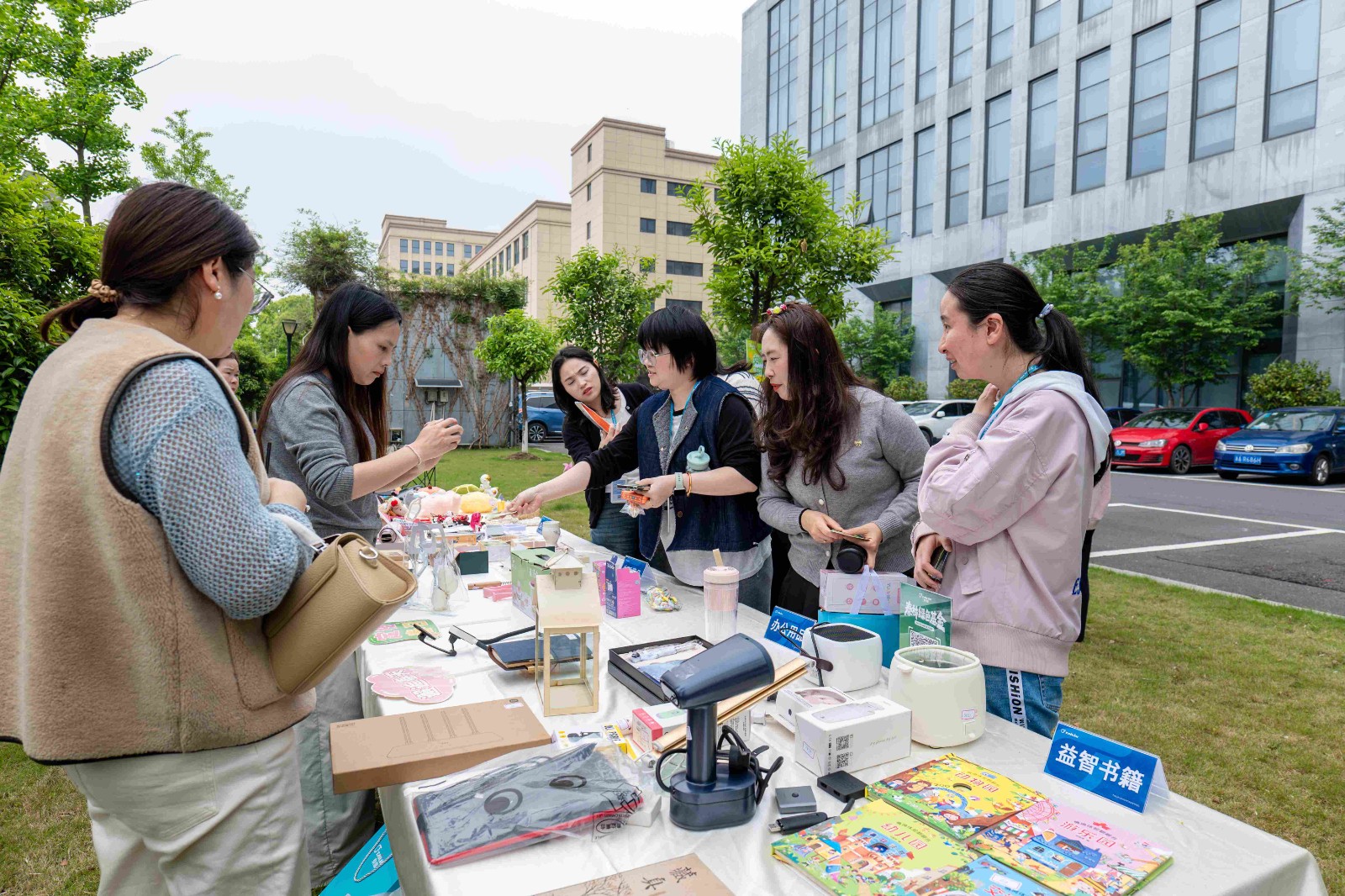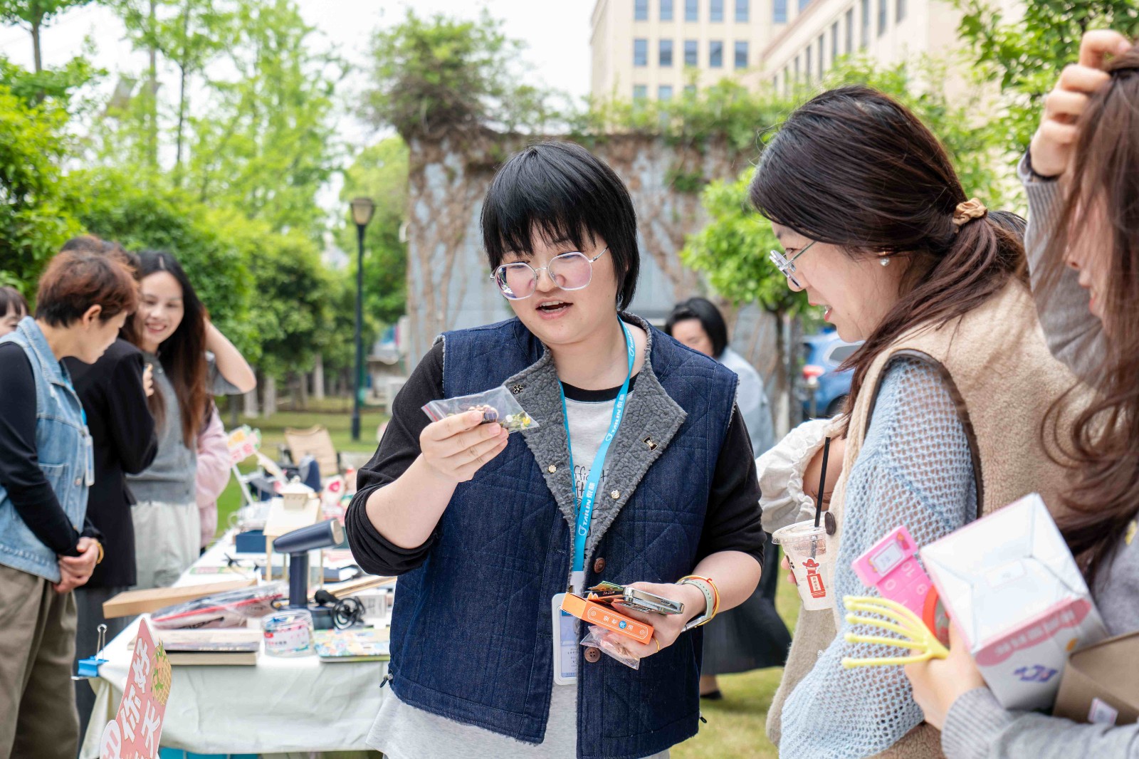 4月15日,各園區(qū)的市集相繼開(kāi)市。員工們手持不同面值的交換券,穿梭在各個(gè)區(qū)域之間,仔細(xì)挑選心儀好物。他們時(shí)而駐足端詳,時(shí)而交流心得,偶爾還會(huì)與攤主你來(lái)我往地以券議價(jià),一場(chǎng)專屬泰林人的春日“淘寶之旅”就此開(kāi)場(chǎng)。