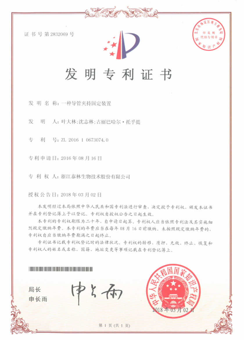 泰林生物擁有國家專利450余項,其中發(fā)明專利63項。